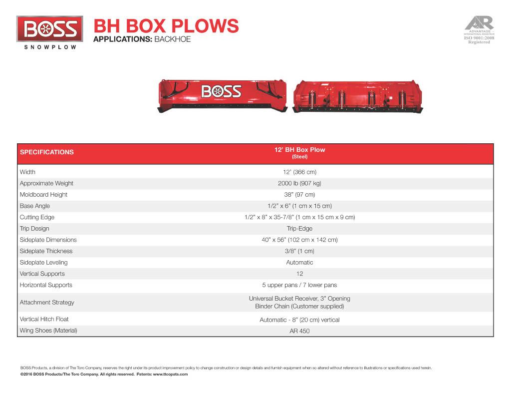BOSS Backhoe Plow Specifications