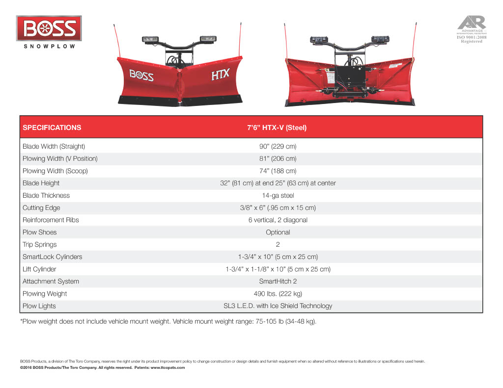 BOSS HTX V-Plow Specifications
