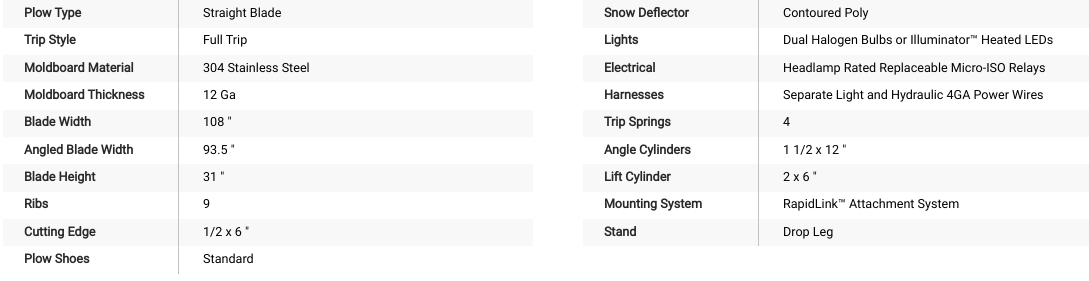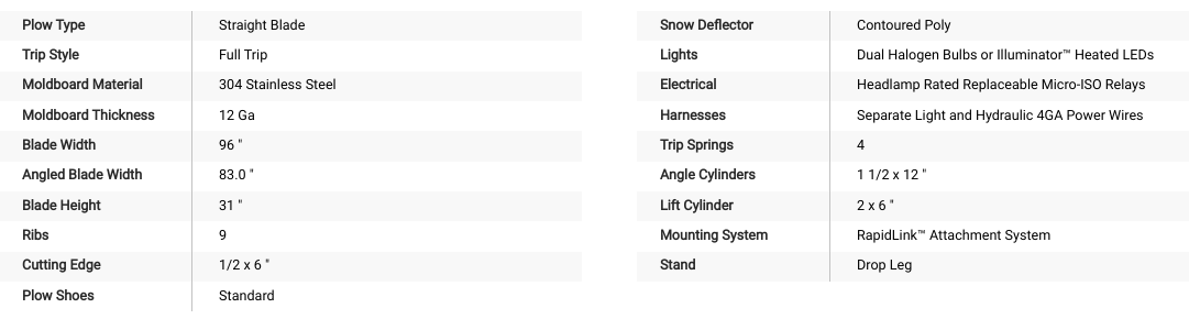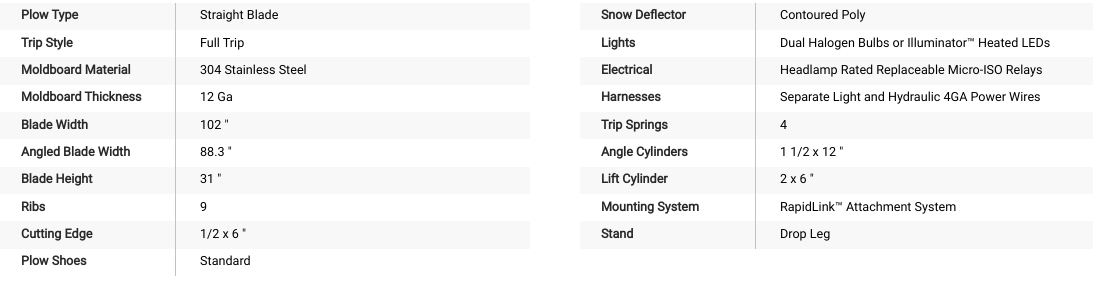 The corrosion resistant 304 stainless steel moldboard never needs paint. A robust frame spreads impact across the blade to reduce wear on vital components.