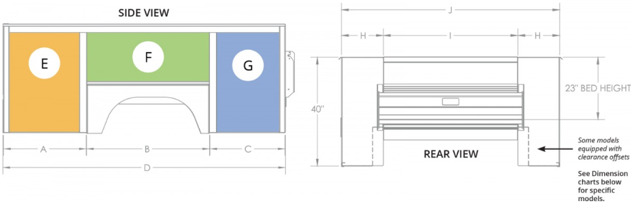 * Beds designed for a RAM Mega Cab will only have two boxes in the rear to accommodate standards on this chassis.