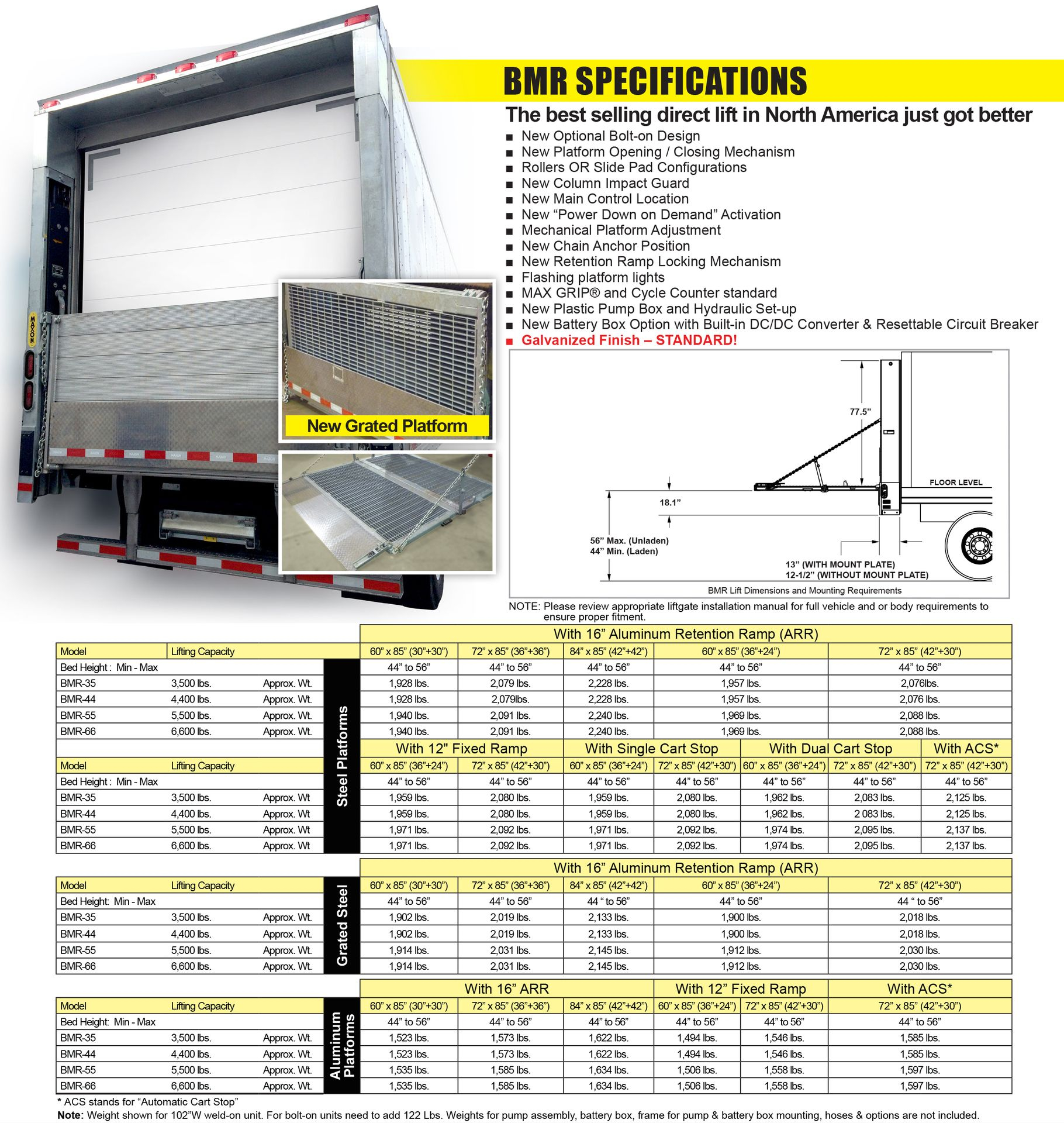 Maxon BMR Liftgate Specifications