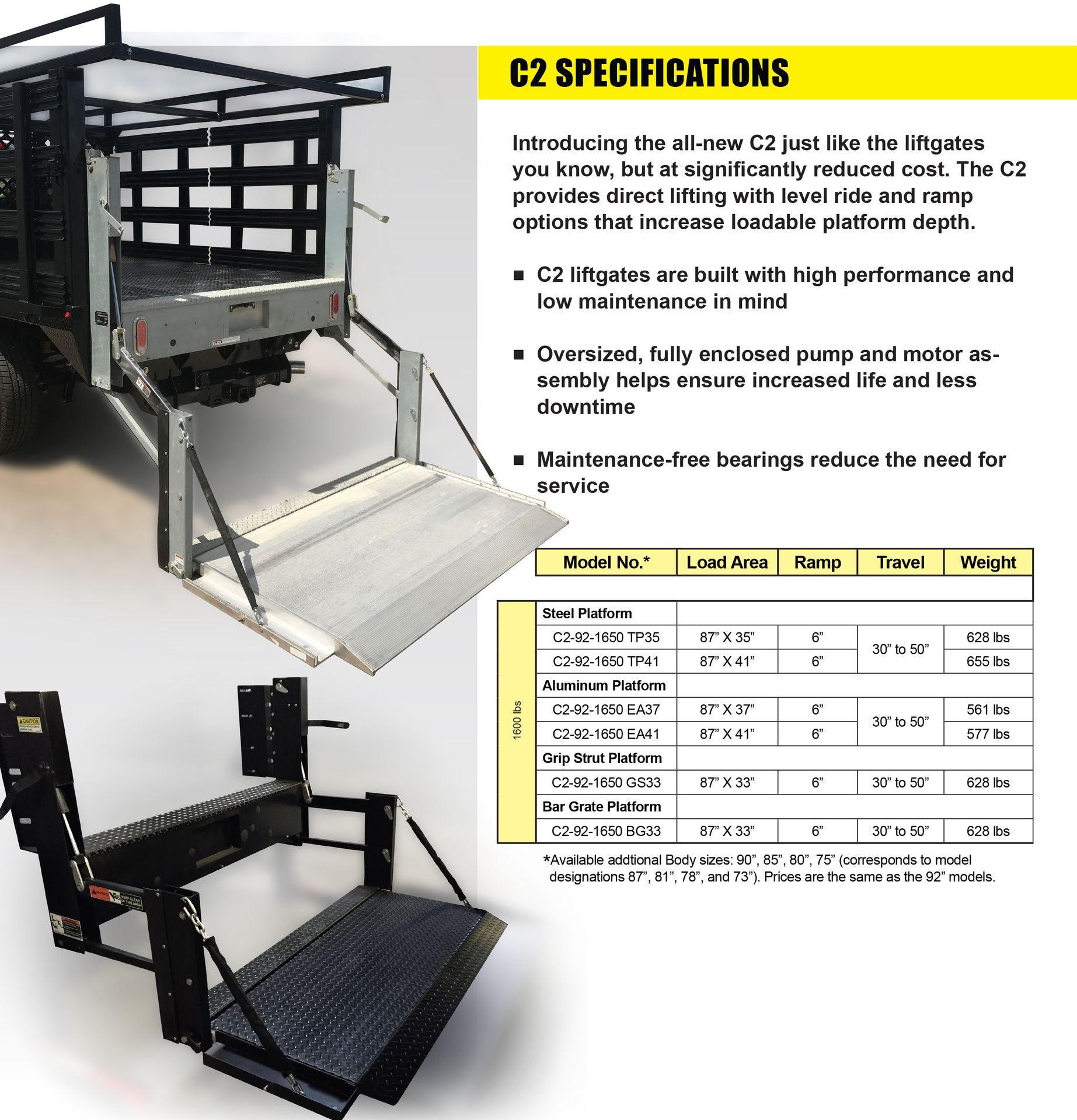 The C2 C2 is ideal for today's stakebed and van body vehicles. Lifting up to 1600 lbs, Me2 is a cost-effective option with heavy-duty features that delivers reliable performance.