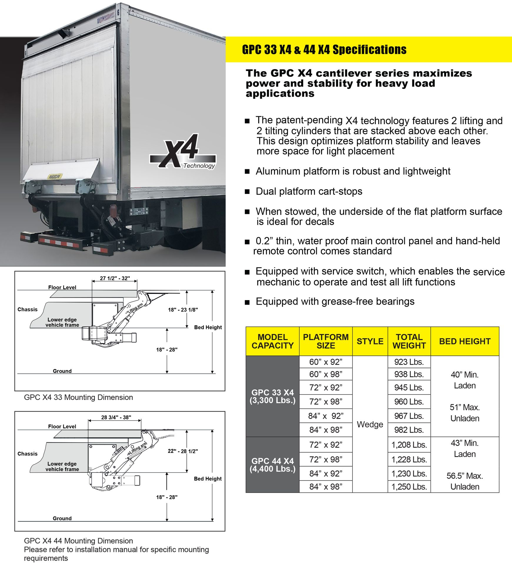Maxon GPC 33/44 X4 Liftgate Specifications
