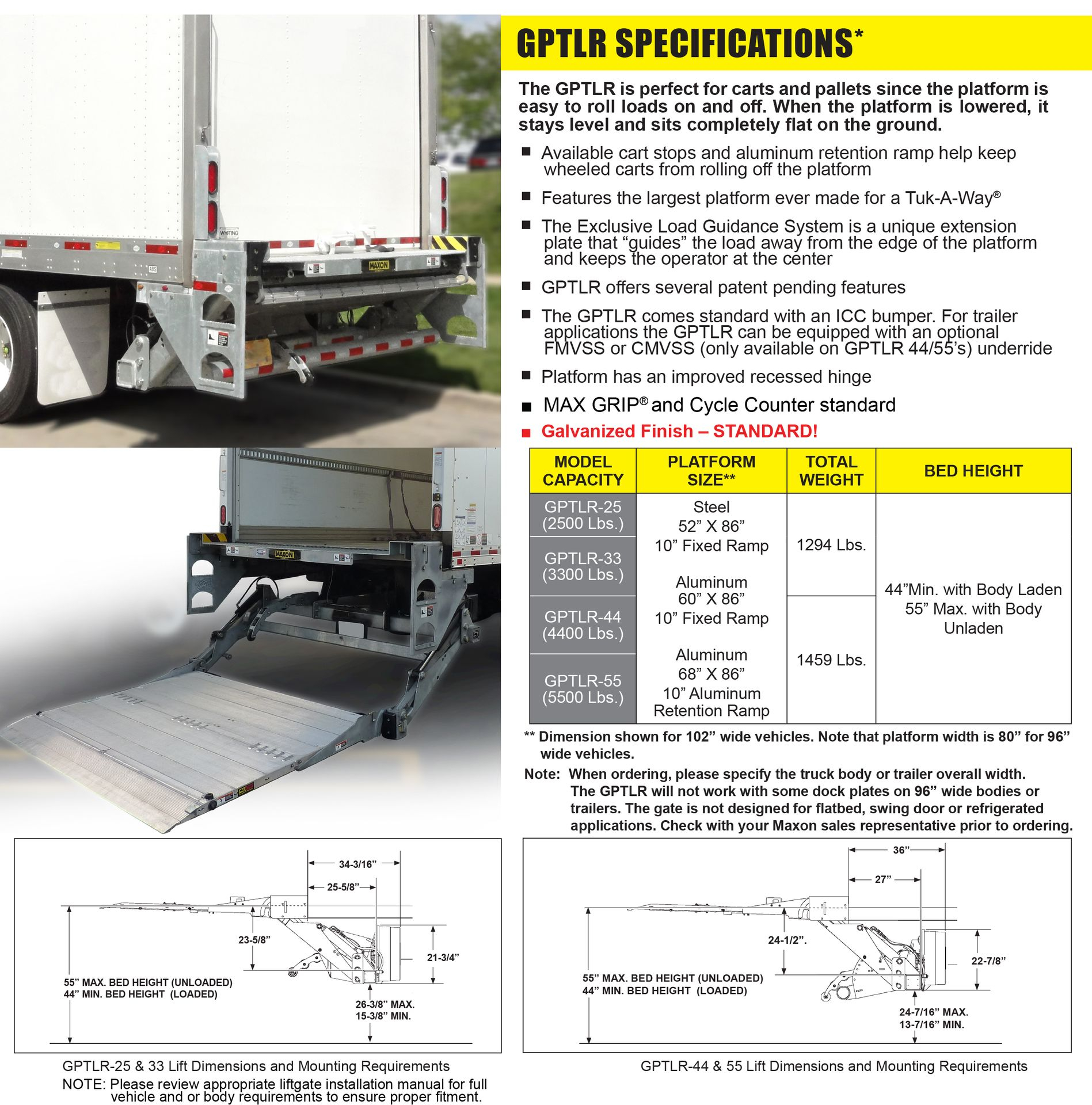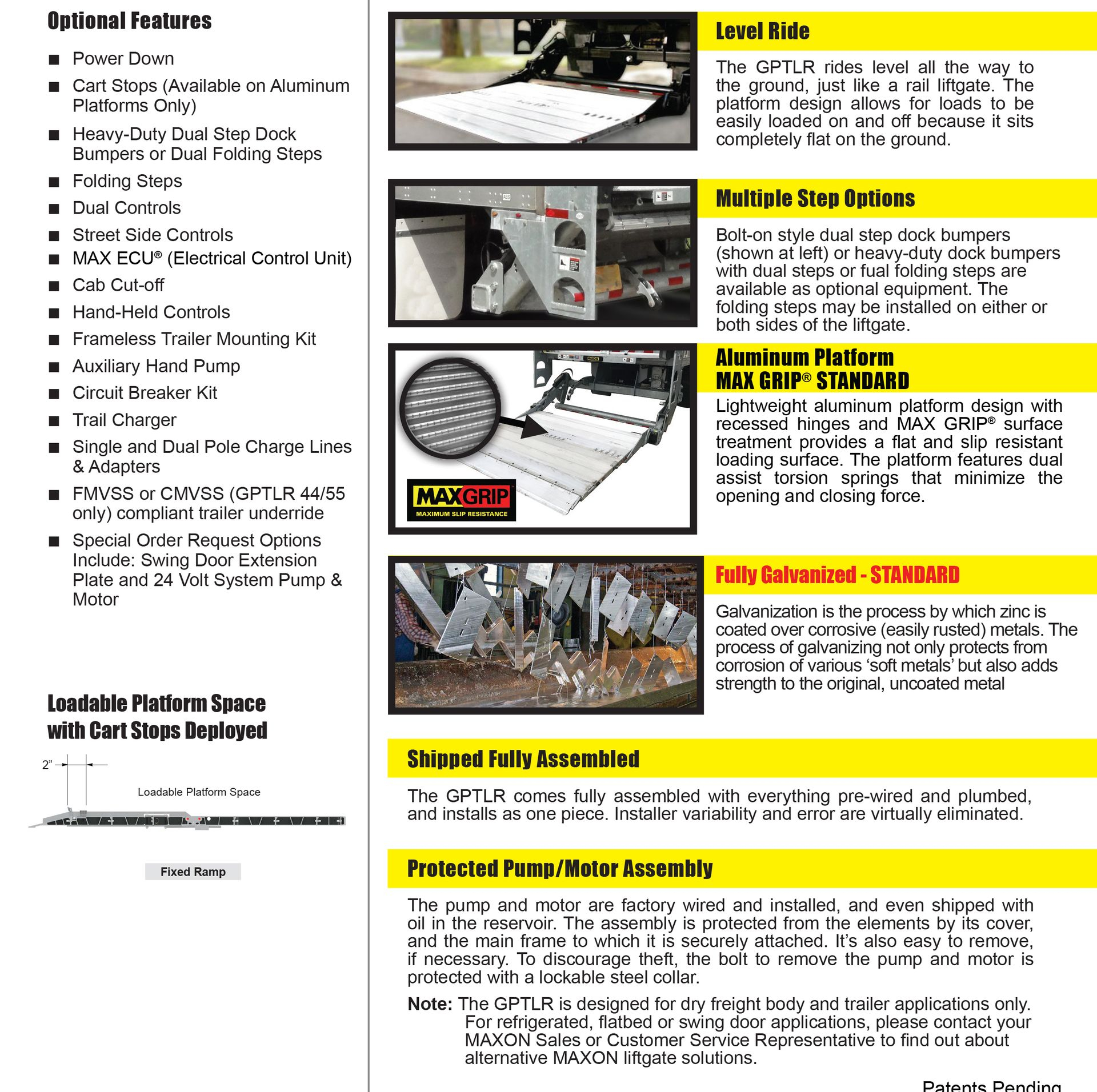 Level ride from the truck all the way to the ground is what Maxon's GPTLR delivers—while handling up to 5,500 lbs of cargo. With a variety of platform and ramp options, it's ideal for handling top heavy carts and palletized loads.
