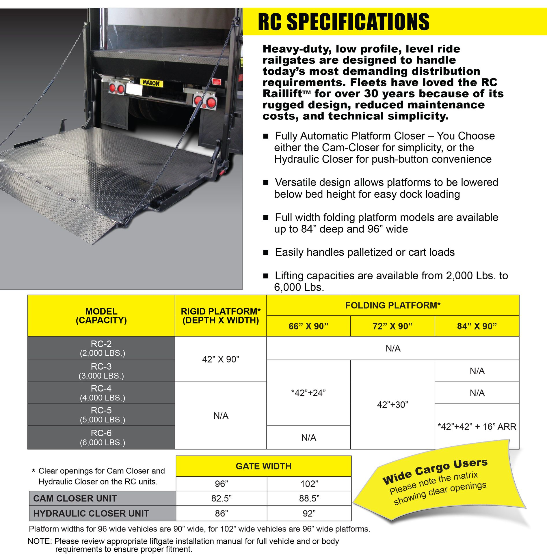 Maxon RC Liftgate Specifications