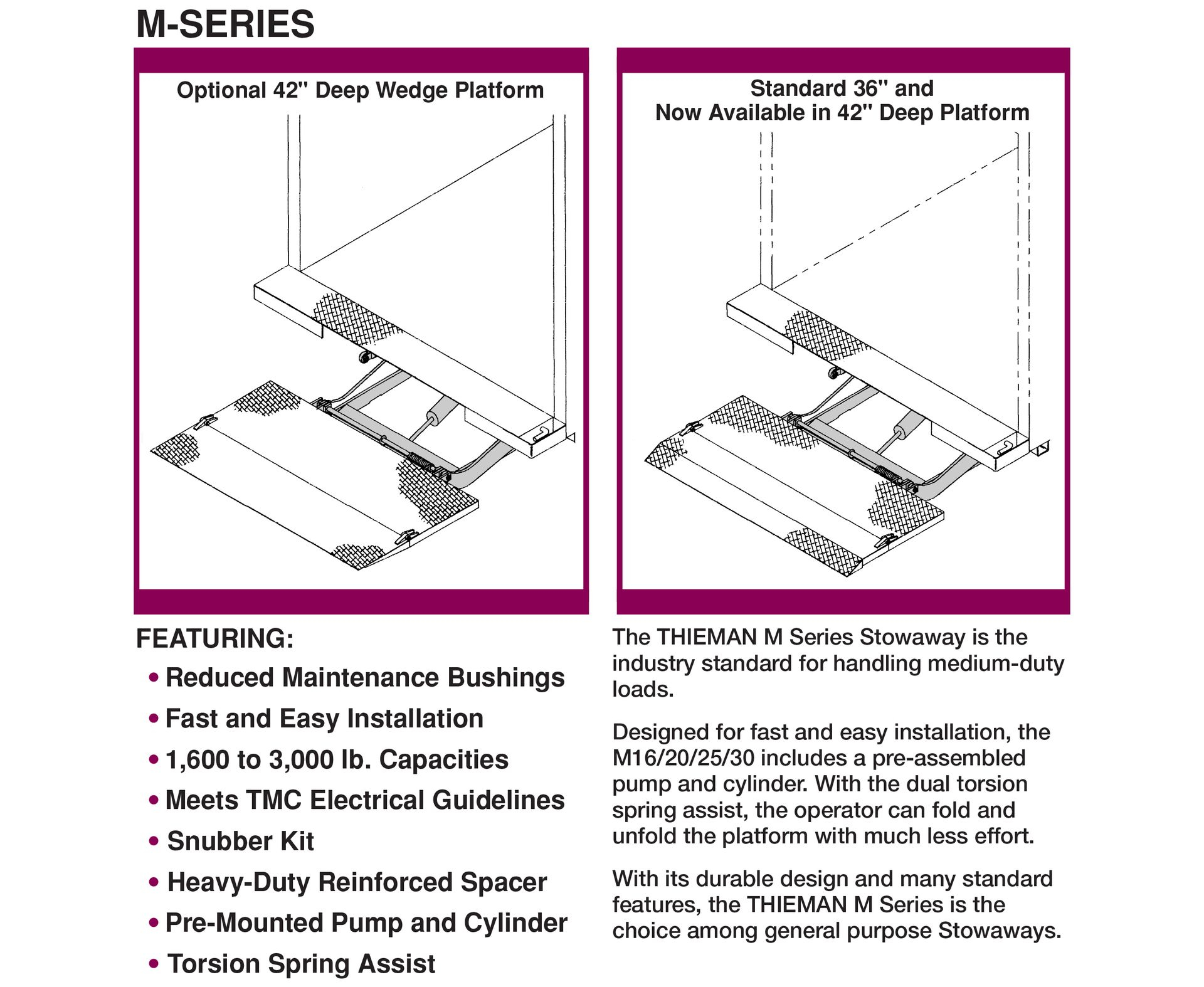 The THIEMAN M Series Stowaway is the industry standard for handling medium-duty loads.