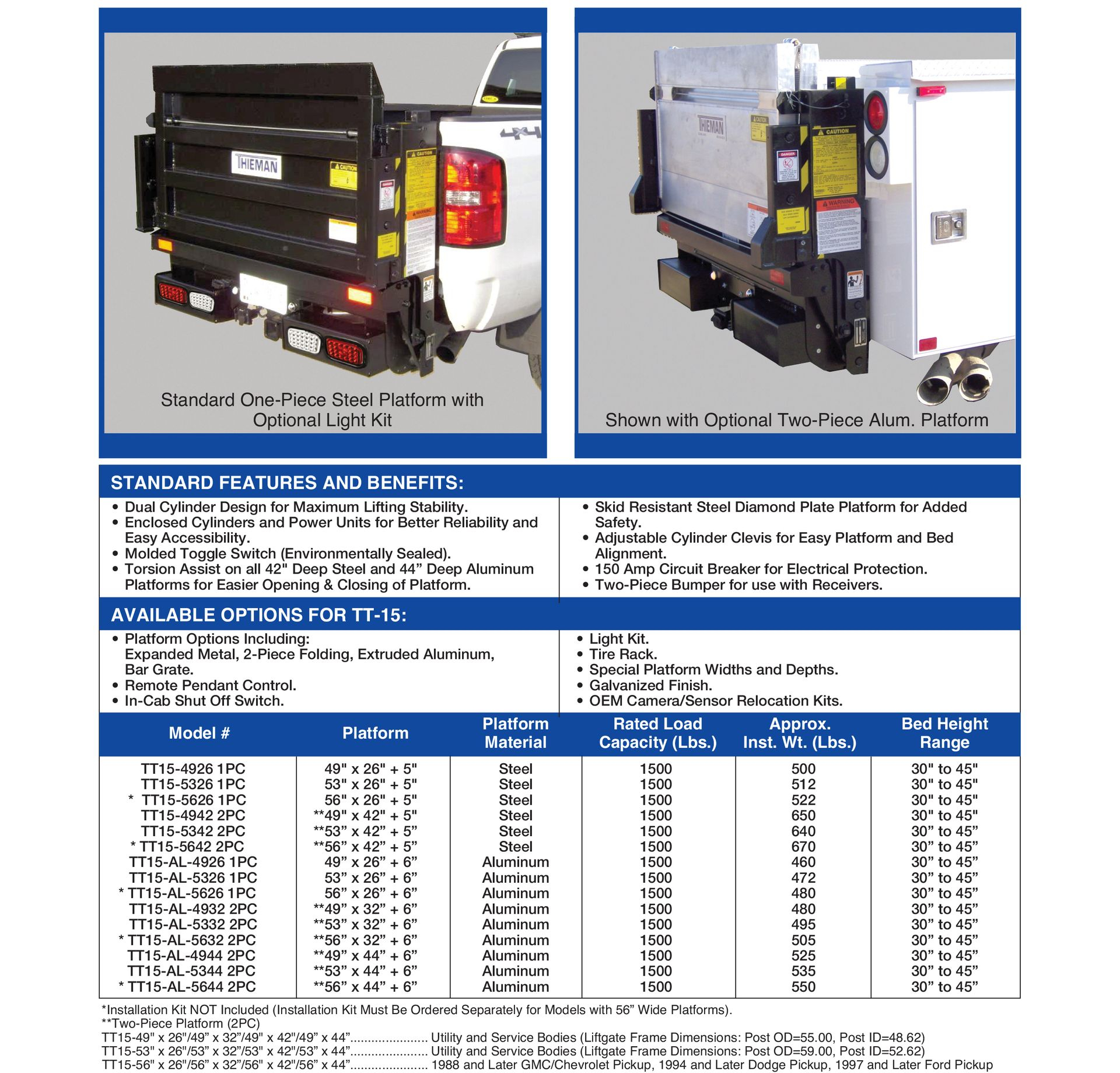 Thieman TT 15ET Liftgate Specifications